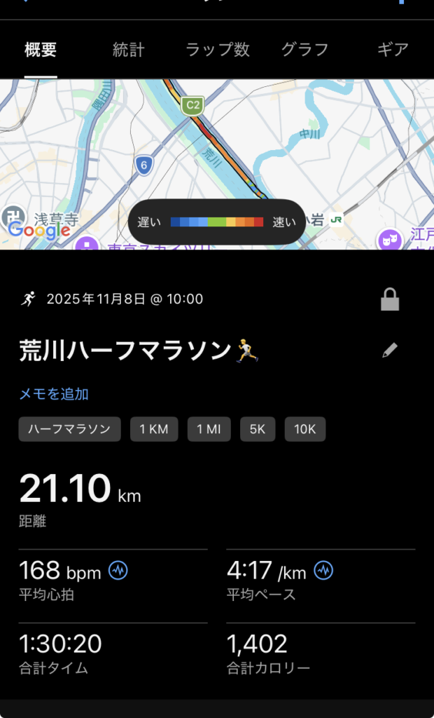 この少しの後悔は約2ヵ月後の赤羽ハーフマラソン2026で払拭されるのですが…