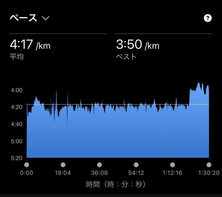 なんか悶々としながら走ってたのですが、「そういえば4分20秒のペーサーがあったじゃん!!」