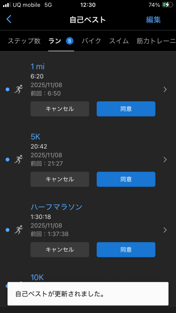 しかも1キロ・1マイル・5キロ・10キロのPBも更新してました!!