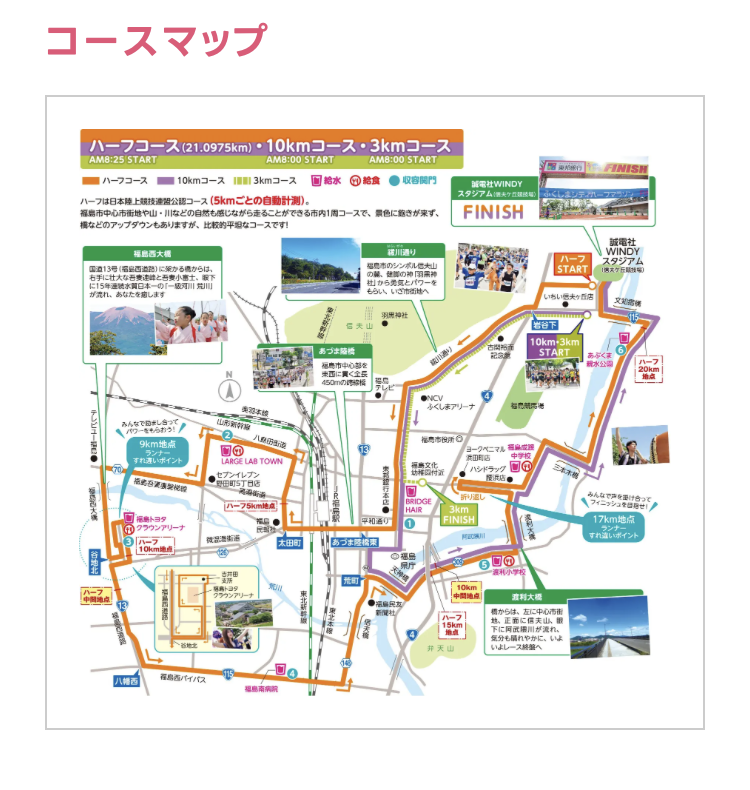 コース 福島駅周辺を走るコースで、とにかく沿道の声援が凄く元気をもらえるコース