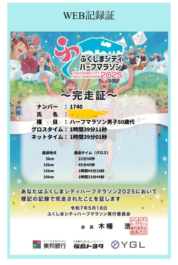 ふくしまシティハーフマラソン2025は、記録だけを見れば完全な失敗レースでした。