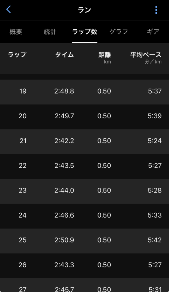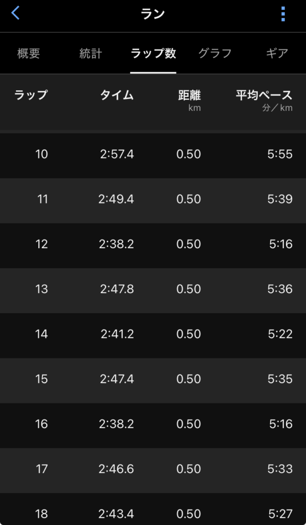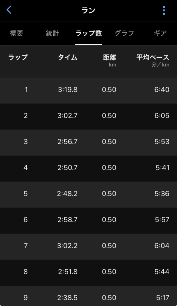 それでも最初は、1キロ経過後にラップが早すぎたや遅かったなどだったので、500mでアナウンスする設定にしてました。(さすがに今は体がある程度判断するので1キロにしてますが)