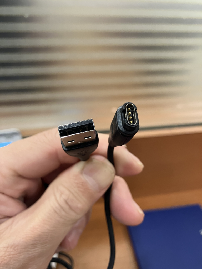 これも買った後困ったのですが、ガーミンのスマートウォッチは専用の充電ケーブルなので、充電が切れそうな時にスマホのように「モバイルバッテリー貸して」が通用しません。