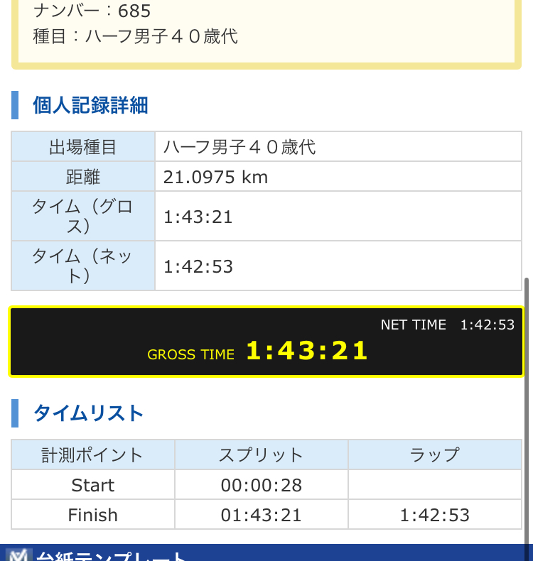 この時はハーフマラソンとフルマラソンが別競技の認識がなかったです。