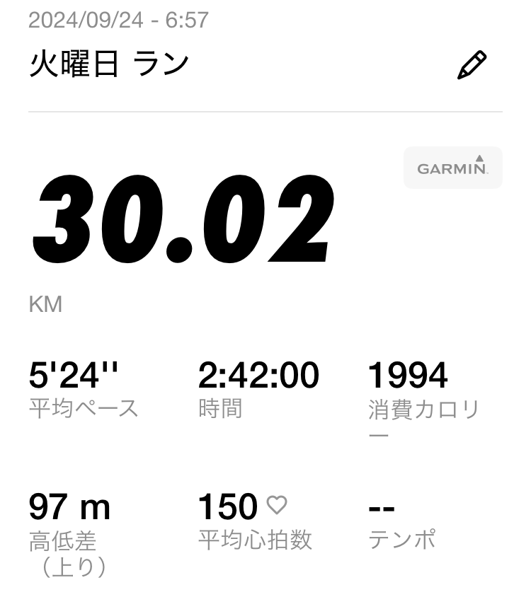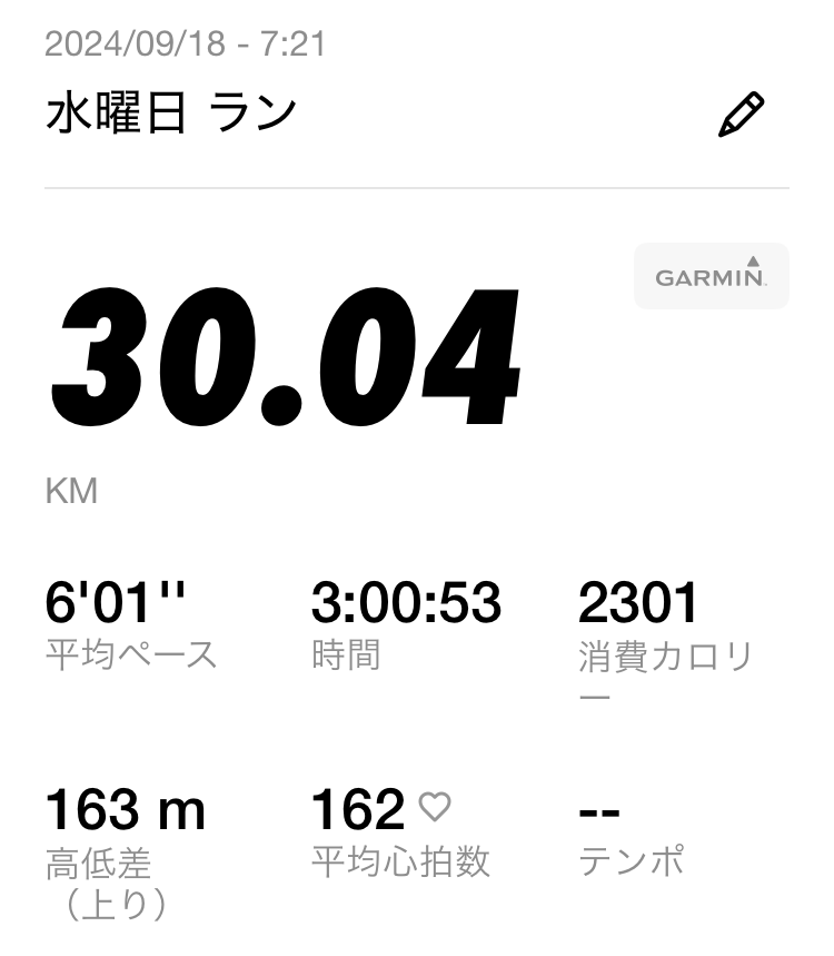 初めて30キロ走をした時のタイムが1キロ6分…この時は20キロ以降急激にタイムが落ちました。結果走り終わった後かなり自信も落ちました。