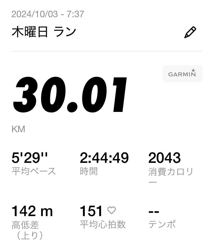 記録1時間39分24秒(ガーミン)